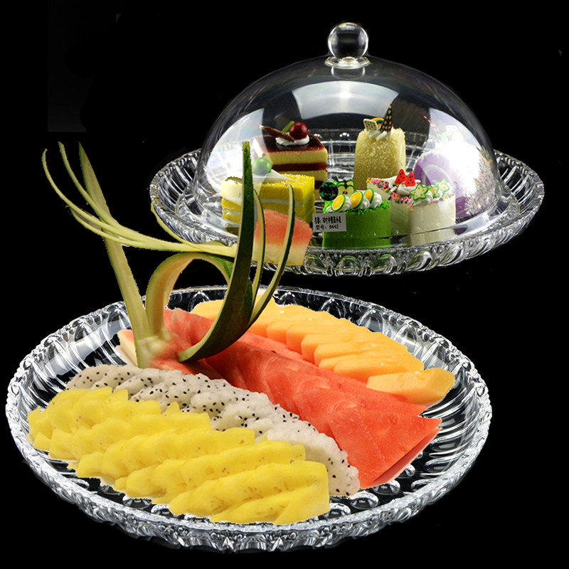 Transparent round fruit tray with lid plastic refreshments Try to eat plate Living room Multifunction Home Candy Snacks