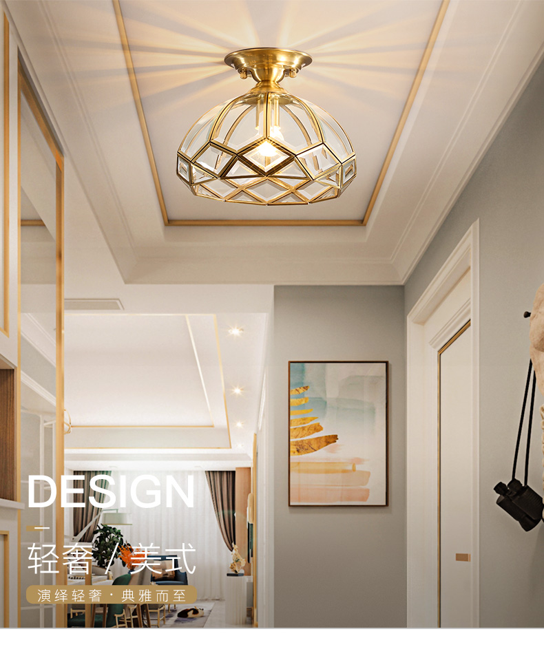 All-copper porch ceiling lamp entry aisle corridor balcony cloakroom lamp American personality creative staircase small chandelier