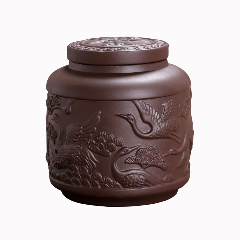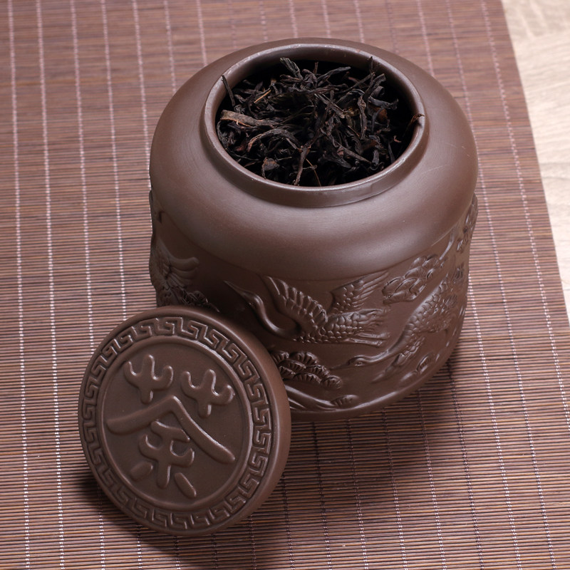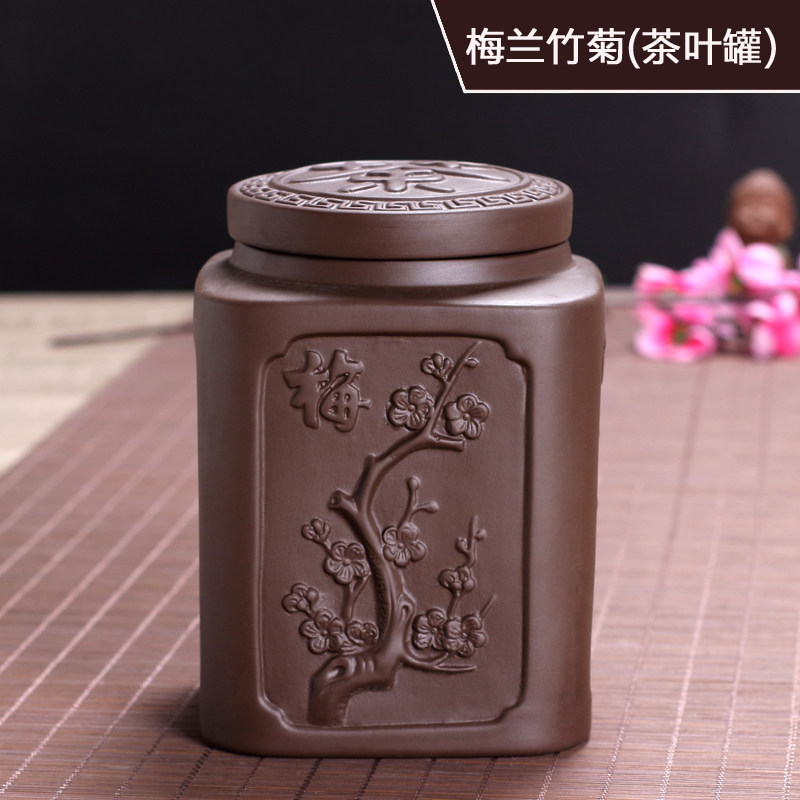 Tea can sealed tank purple sand storage tank pure hand storage household small ceramic plum orchid bamboo chrysanthemum retro tea warehouse