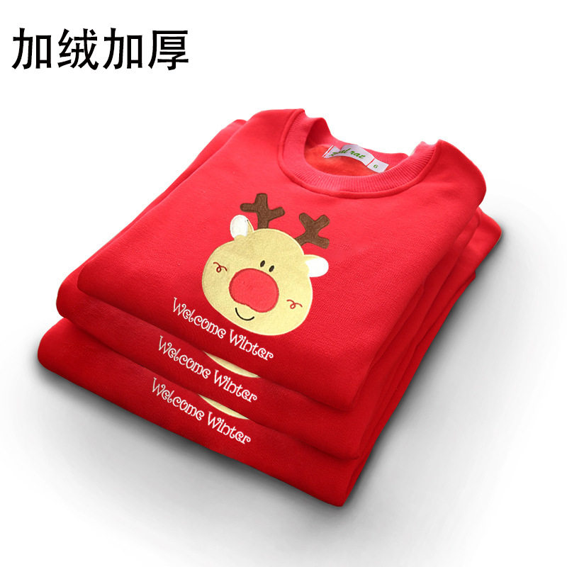 Pure white sweatshirt red thick cotton T rice white gush (thick section) red plus suede (thick) grey cartoon deer necroe red cartoon deer necropolis red cartoon deer gush (thick section)