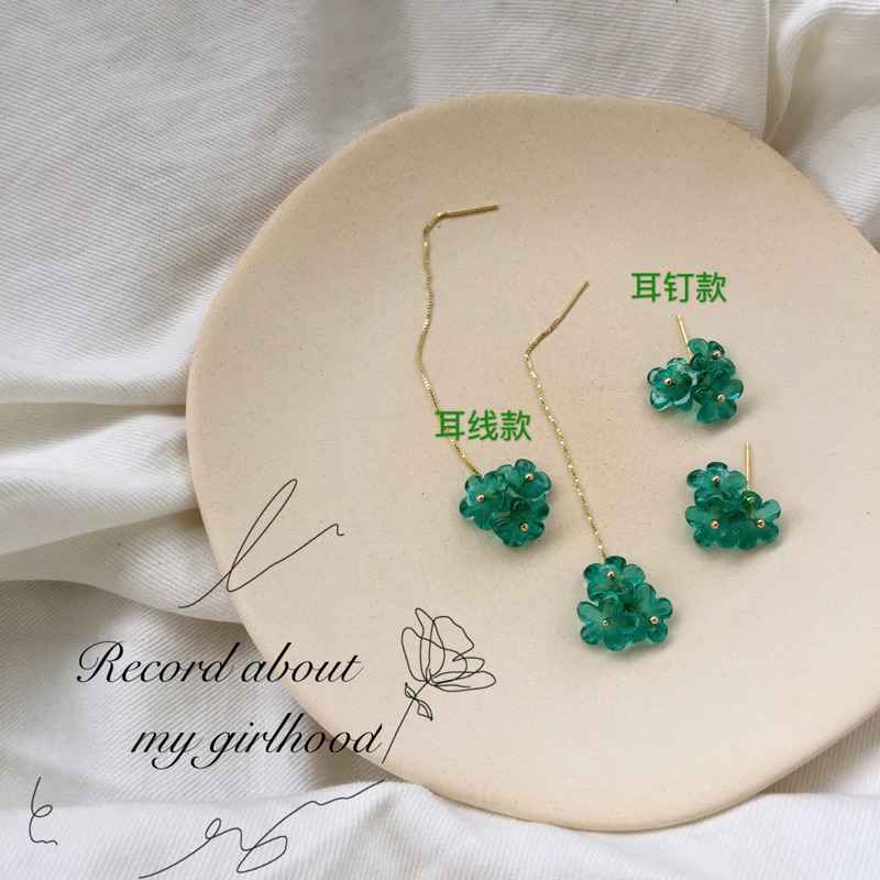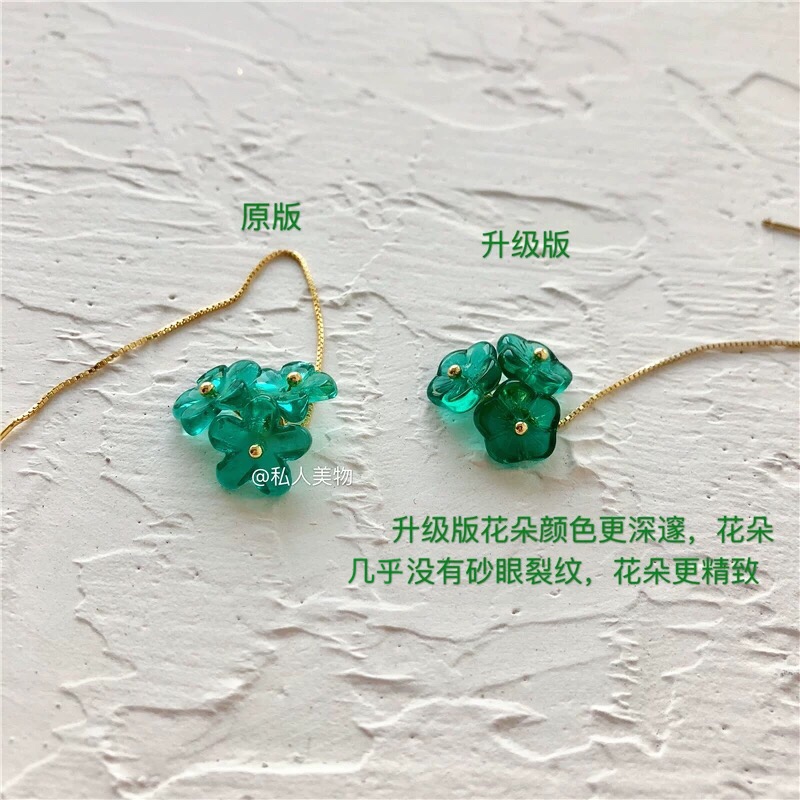 Ear Necklace Original Size No Deback A Couple Of Flowers With Bubble Slight Sand Eye Ice Cracks Please Read The Details Again The Single Original Size Changing Ear Needle Without Backchanging A Pair of Upgraded Versions Ear Chains Do Not Depress A Pair of Upgraded Version Ear Needles No Deback