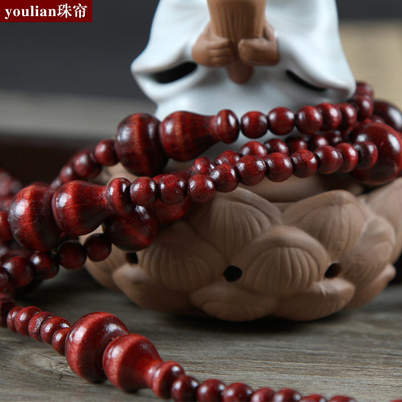 Peach wood gourd bead curtain Chinese Feng Shui curtain Living room entrance partition window Bedroom powder room hanging curtain free hole