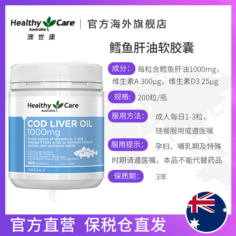 HealthyCare Aussie Con Cod Liver Oil Soft Capsule Children Adult student juvenile Australia imported 200 grains