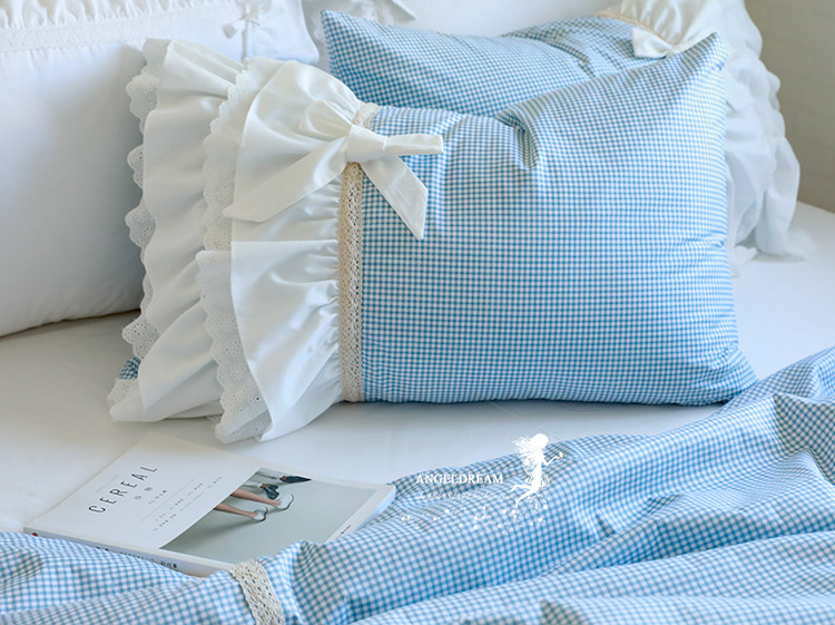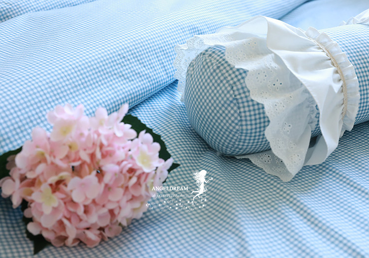 Blue Plaid Quilt Cover Rice White Bed Skirt With Four Pieces Of Imported Hollowed-out Bed Skirt Princess Four Pieces Imported Net Yarn Bed Skirt Princess Four Pieces Of Blue Plaid Covered Bed Skirt With Four Sets