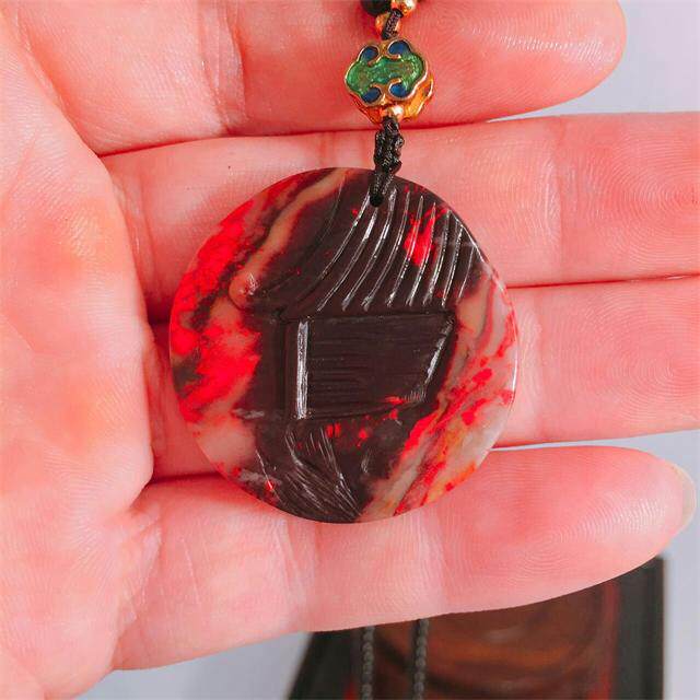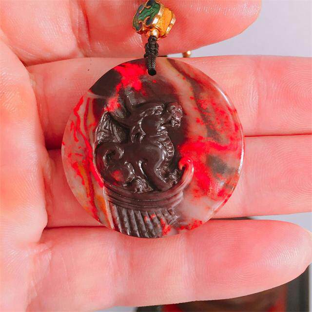 Changhua chicken blood stone One thing and one product Pure hand-carved cinnabar land Dahongpao Chicken blood stone Suan Ge fine pendant