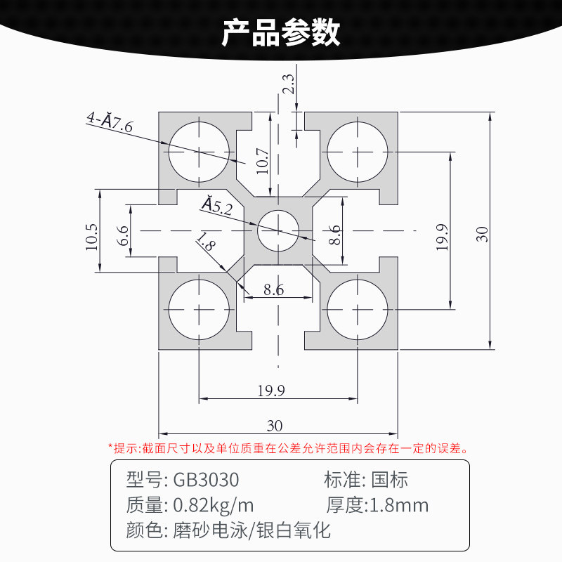 Aluminum extrusion material 3030 industrial aluminum extrusion material assembly line table Aluminum alloy 3030 industrial aluminum extrusion material 2 0 thick