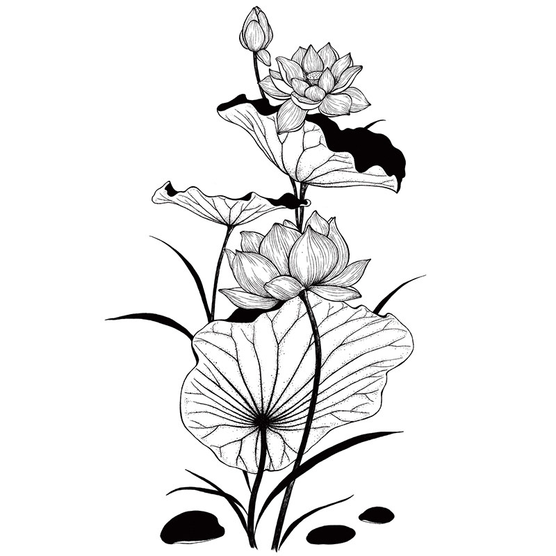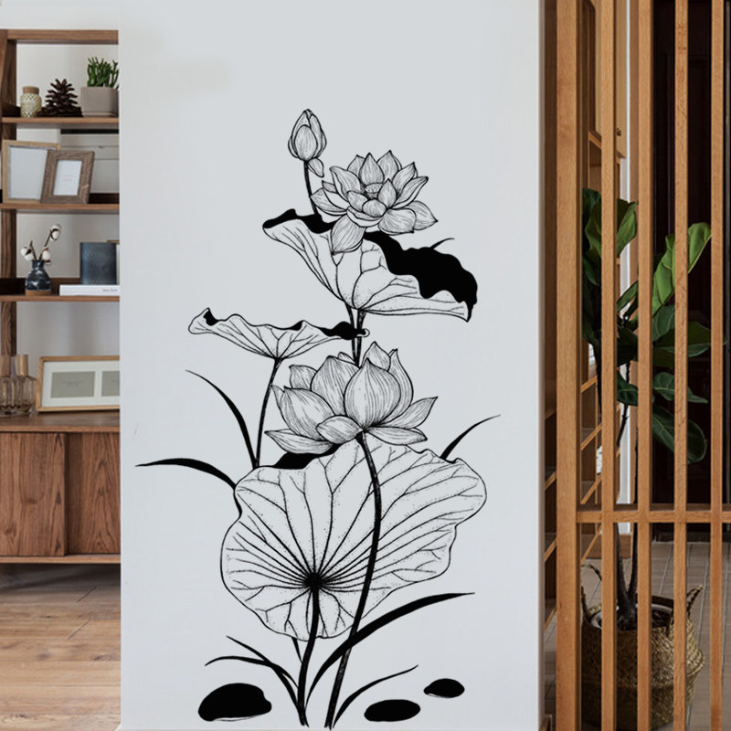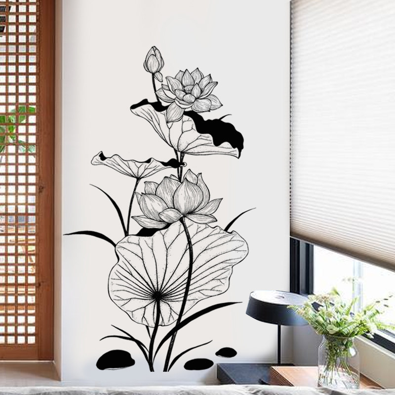 Minimalist Living Room Hand-painted Chinese Ink Lotus Flower Decoration Wall Stickers Romantic Bedroom Bookroom Hallway Sofa Wall Stickler