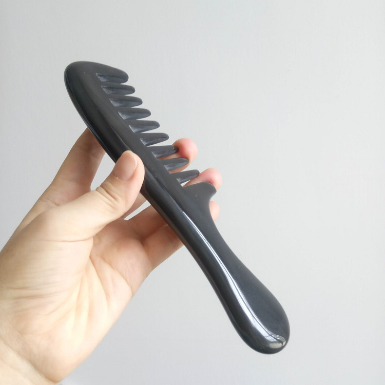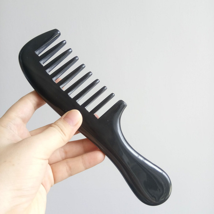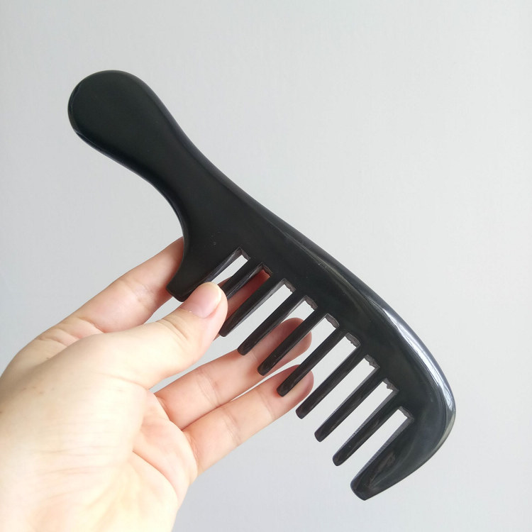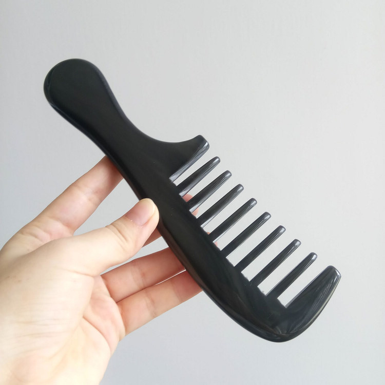 Famous Corner Smith New Products Natural Handmade Old Horn Black Buffalo Horn Big Teeth Wide Teeth Curly Hair Massage Comb