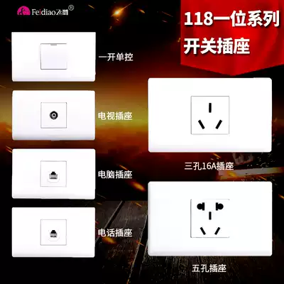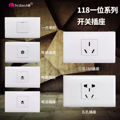 Flying carving switch socket 118 type two-position five-hole combination module White concealed household wall panel rectangular