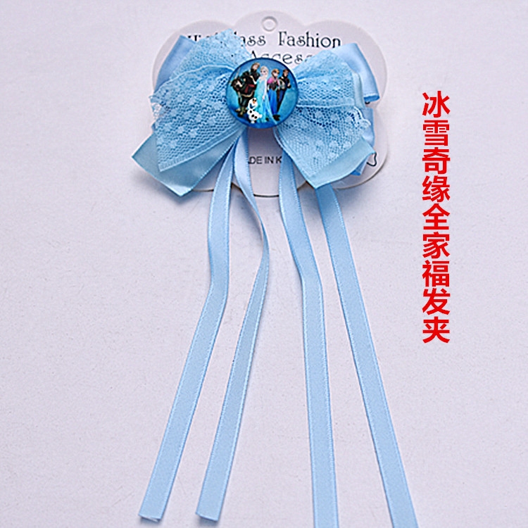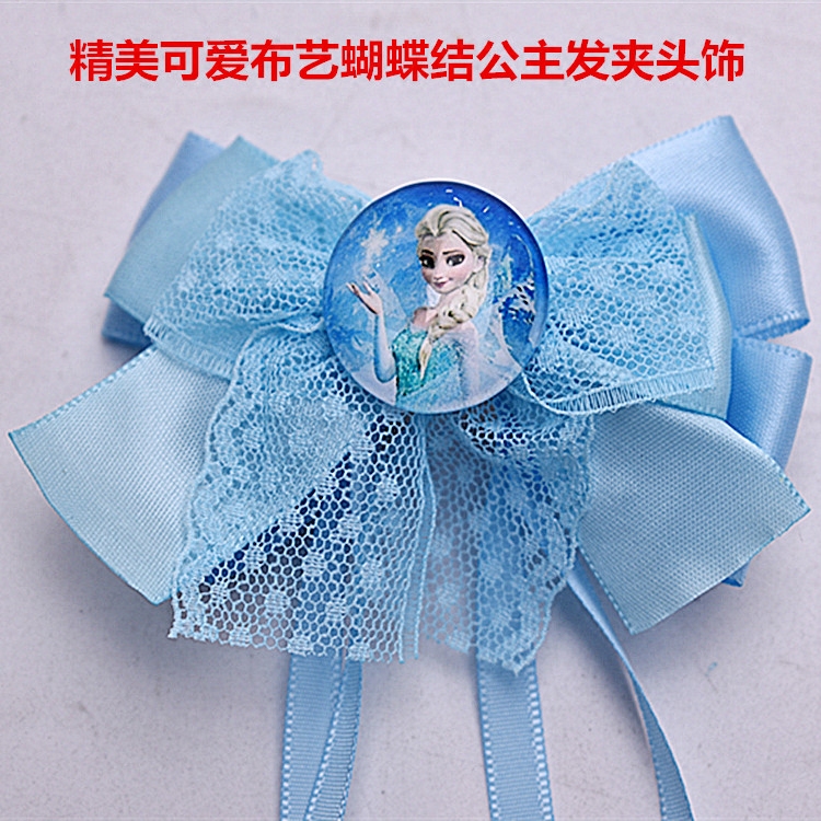 Blue Princess headdress with hair and large butterfly tissue lace cloth handmade ribbon hair and snow-curved hair