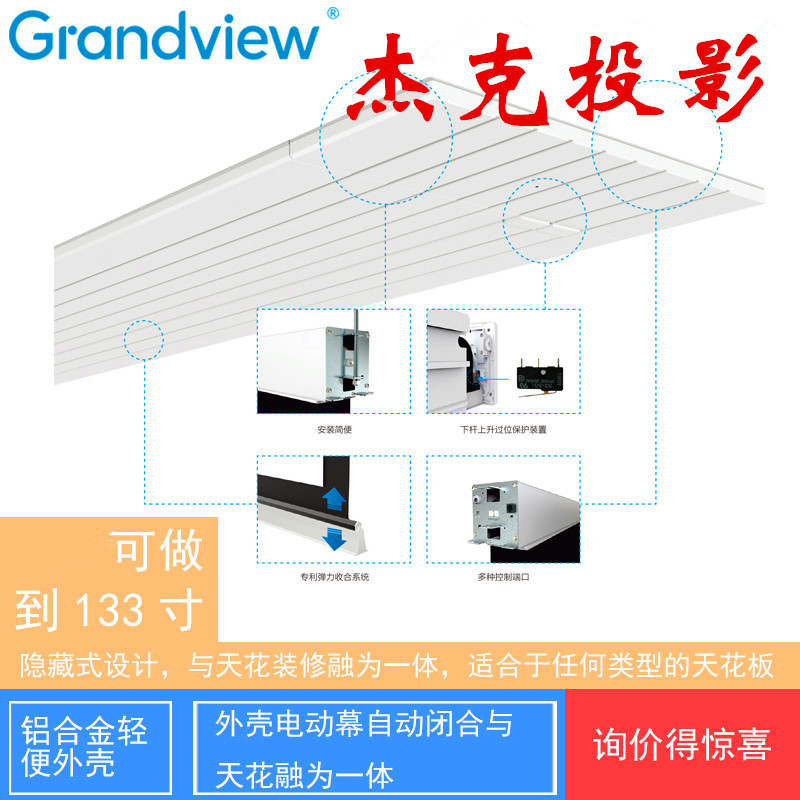 Mei TV curtain 100 inch 16:9 embedded ceiling hidden intelligent electric projection curtain electric curtain