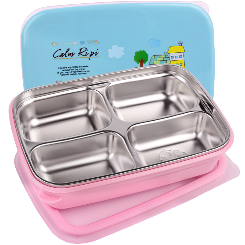 Integrated four-grid blue cartoon 1620ml integrated four-grid powder cartoon 1620ml integrated four-grid yellow cartoon 1620ml integrated four-grid blue transparent 1620ml integrated four-grid blue cartoon 1