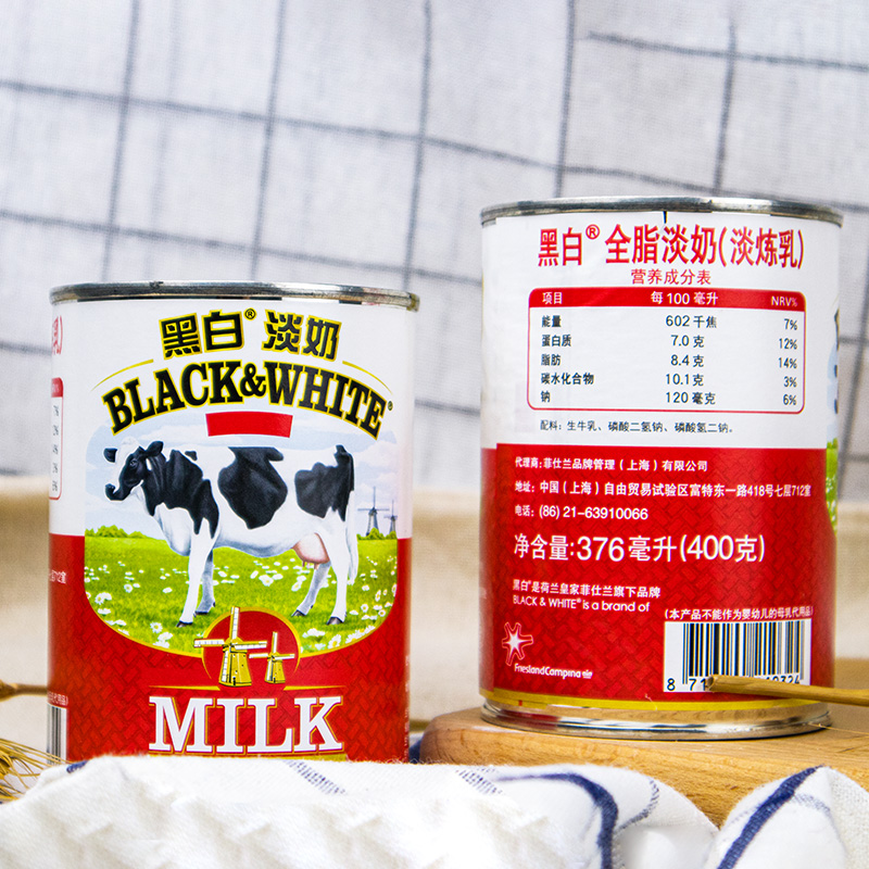 6 cans of Dutch black and white full-fat evaporated milk black and white evaporated milk 400g silk stockings milk tea raw material black and white condensed milk