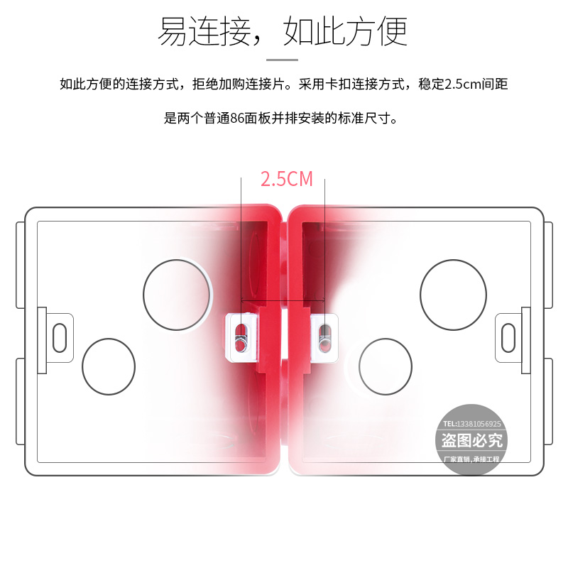 Connectable junction box type 86 dark box high-strength dark wire box universal concealed switch socket bottom box red