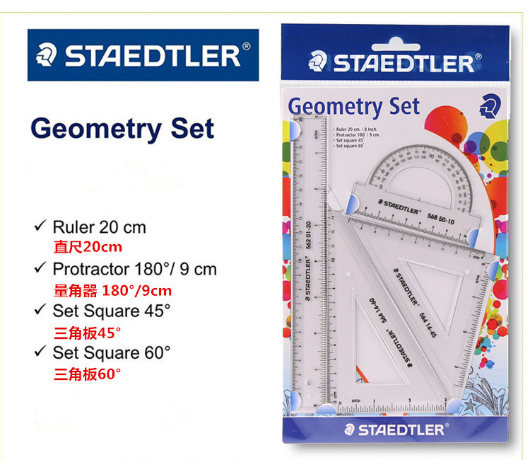 STAEDTLER STAEDTLER 569 STUDENT GEOMETRIC DRAWING DRAWING RULER FOOT TRIANGLE PROTRACTOR SET