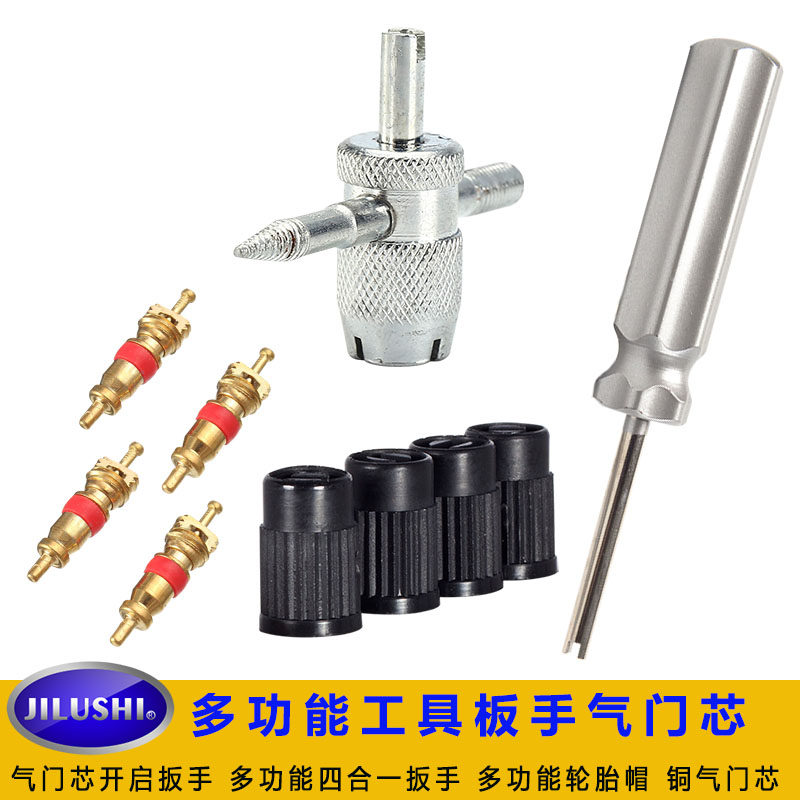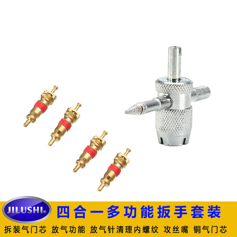 Four All-in-one Multifunction Tire Nozzle Wrench Copper Valve Core Car Bike Tire Cap Valve Core Driver