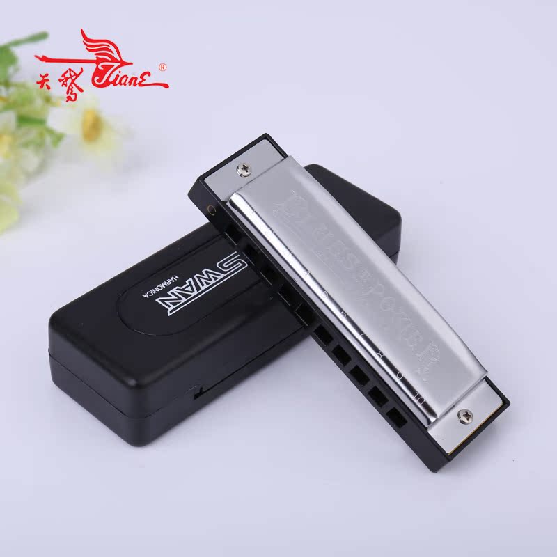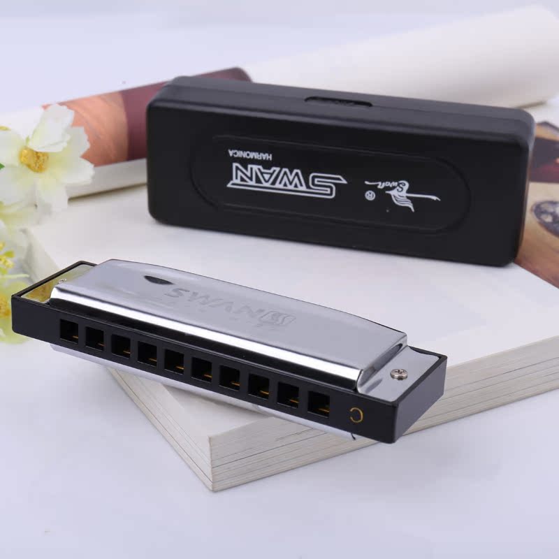 Swan 10 Holes Blue Tone Silver Color C Harmonica Large ten Holes Full Soundstage Standard Soundstage Beginology Blown instrumental