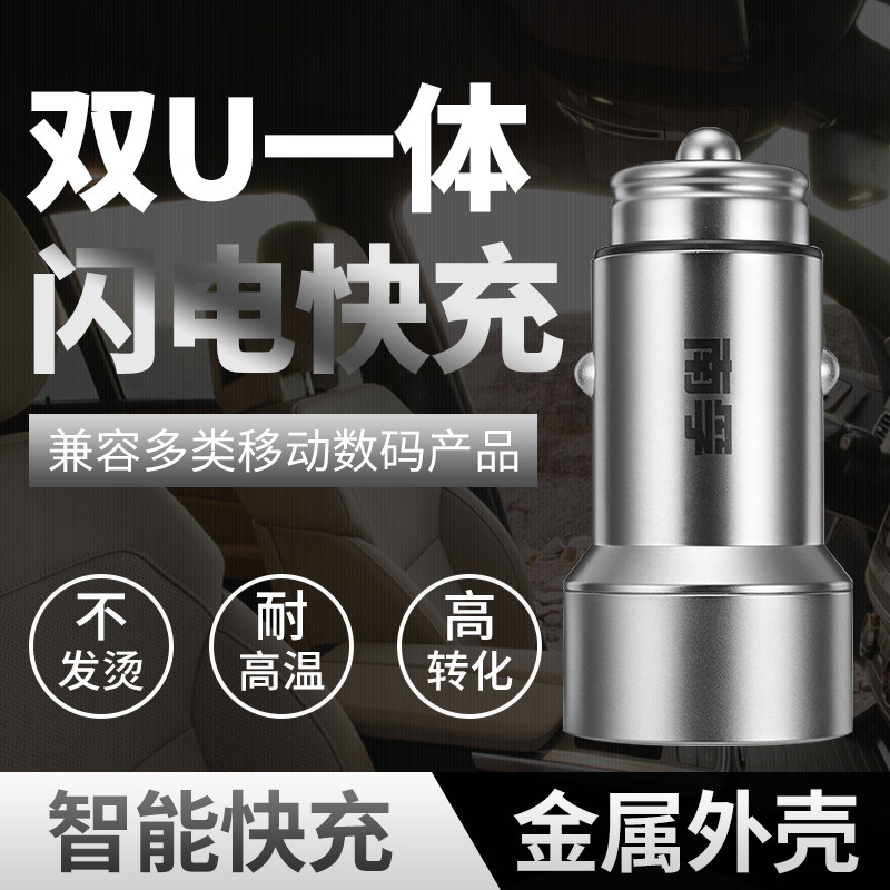 Nanfu car charger car cigarette lighter type car charging dual USB intelligent fast charging head multi-function one drag two