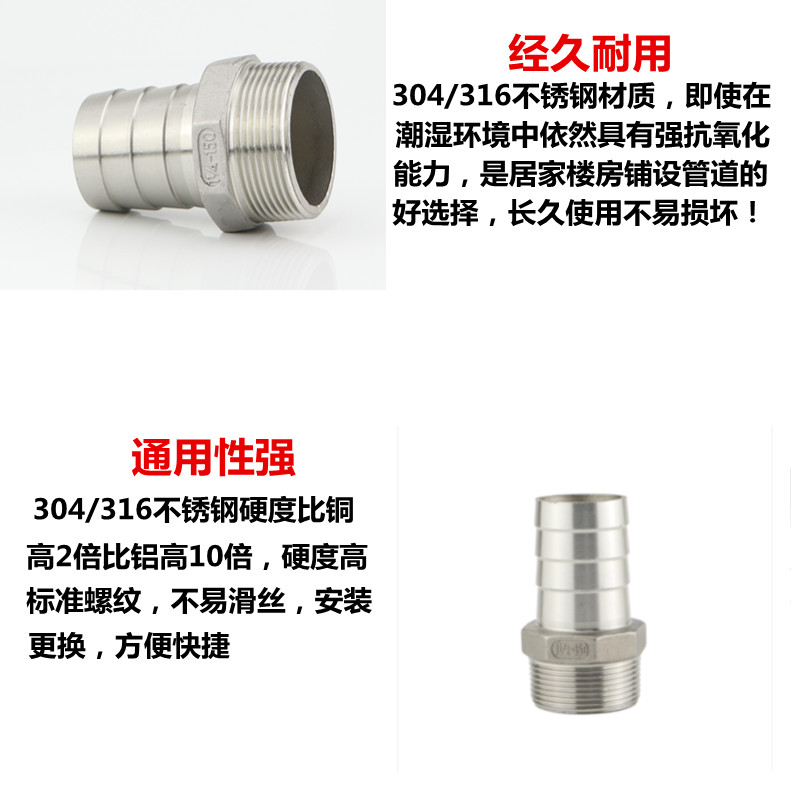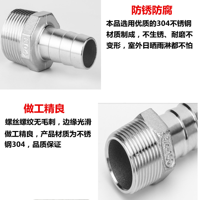 304 stainless steel hexagonal hose gas nozzle leather pipe joint Green joint pagoda joint leather joint outer tooth gas nozzle