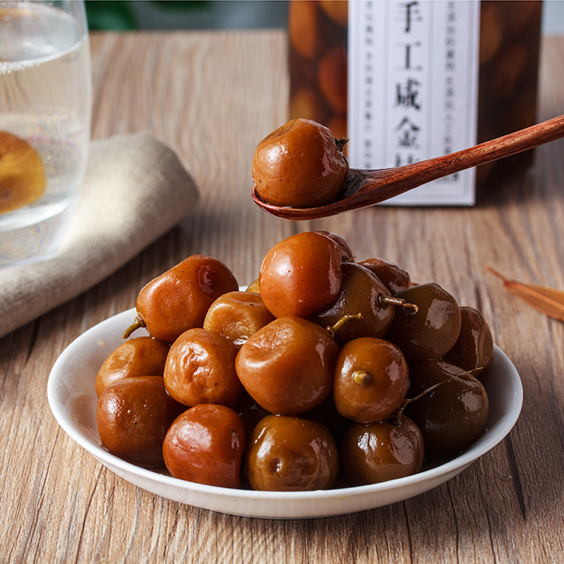 Jiamei hand-pickled salted Kumquat Guangdong Laotan pickled salted citrus 500g glass canned