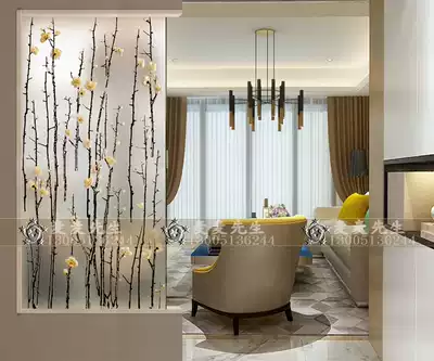 Modern simple art glass screen partition living room entrance background wall bathroom moving door deep carving process plum blossom branch