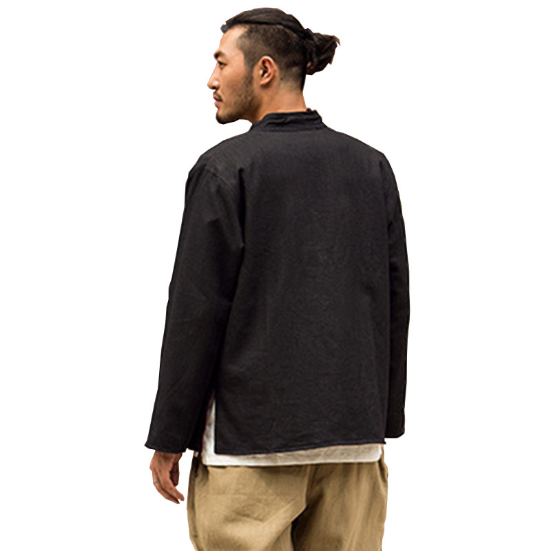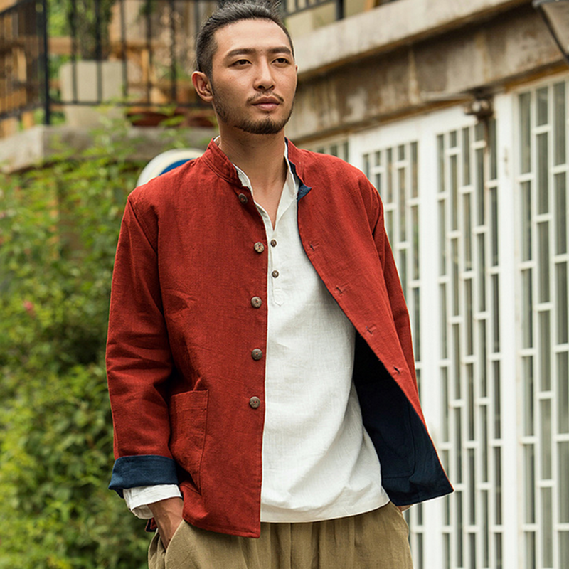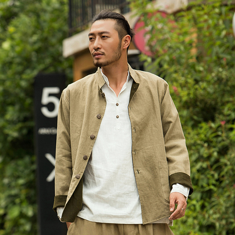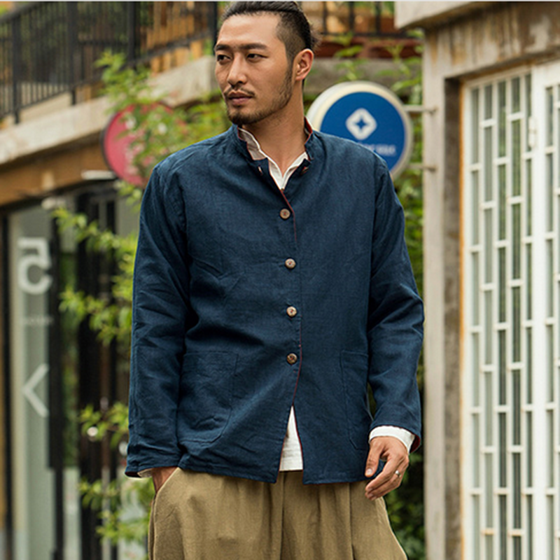 Chinese wind two sides wearing linen shirt retro shirt jacket long sleeve casual cotton linen dress Chinese style men's jacket