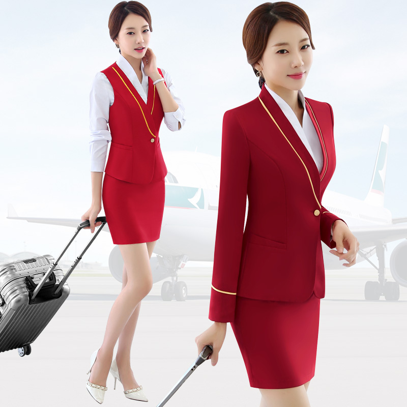 Stewardess uniform professional suit female aviation vest three-piece OL suit beautician overalls beauty salon new