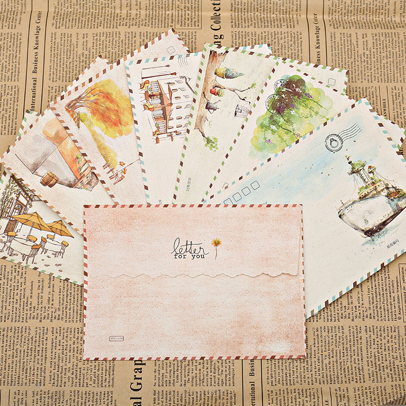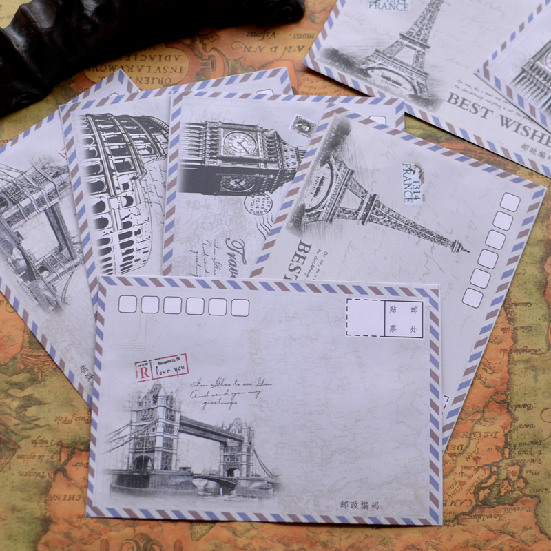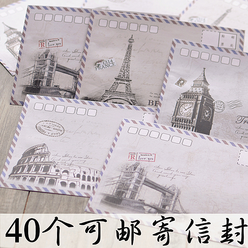 Orange rose red Pink red lotus root Watermelon red wine red 40 European retro architectural envelopes 40 travel envelopes Color 40 nostalgic time envelopes 40 airmail envelopes Cowhide color