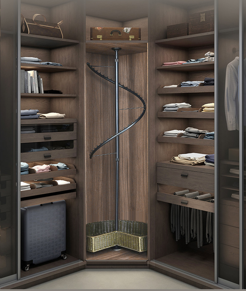 A layer of rotating small hanger a layer of rotating large hanger a layer of rotating orange pants shelf a layer of rotating coffee color pants shelf a layer of rotating rice white pants rack S swivel white bottom basket small number S rotation