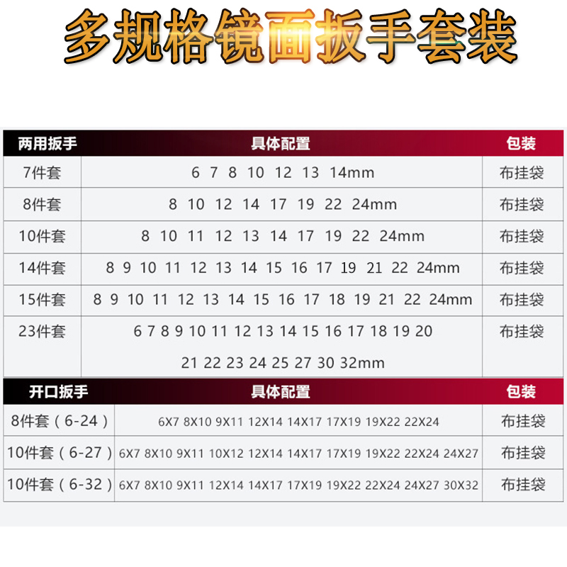 Dual-use Wrench 6 pieces of promotional style Opening Plum Double wrench 8 pieces Opening Plum Double wrench 10 pieces Opening Plum Double wrench 14 pieces Opening Plum Double wrench 15 pieces of cover opening plum