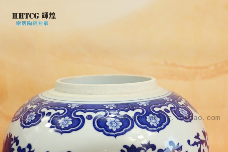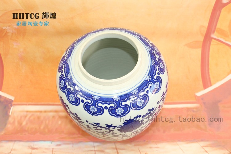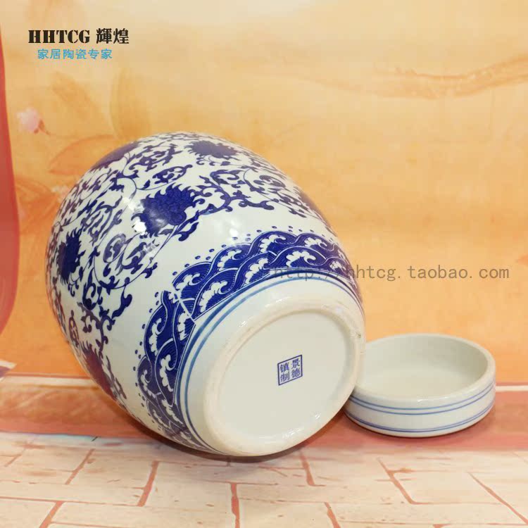 Jingdezhen blue and white ceramic storage jar rice jar Decorative porcelain jar Sealed jar Egg jar 10 kg wine jar