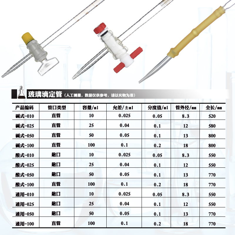 White alkali titrate tube 10ml (overly inspectable) White alkaline titrate tube 25ml (overly inspectable) White alkaline titrate tube 50ml (overly inspectable) White alkaline titrate tube 10