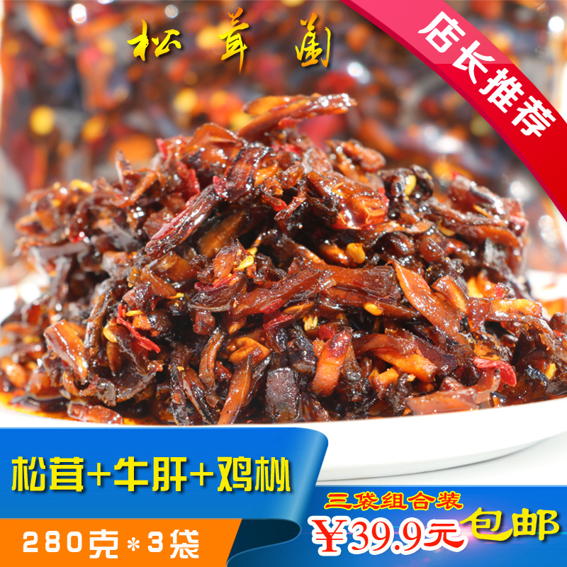 Yunnan specialty chicken silk mushroom, porcini mushroom, pine mushroom, spicy and spicy ready-to-eat snacks, snacks, drinks and meals 3 bags
