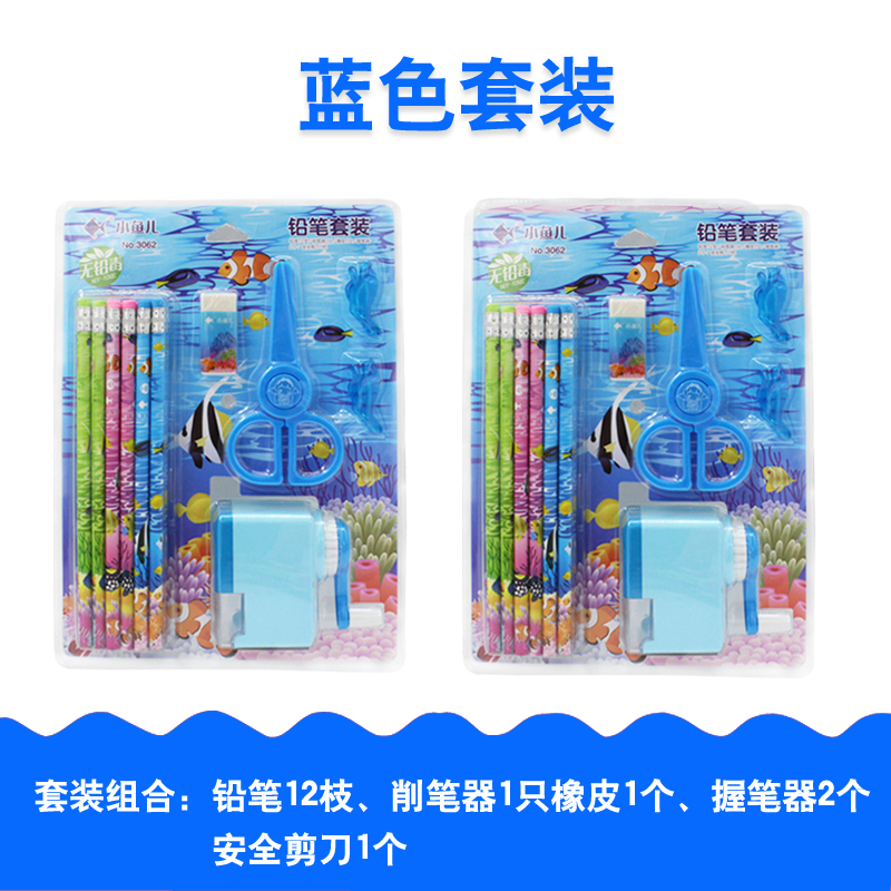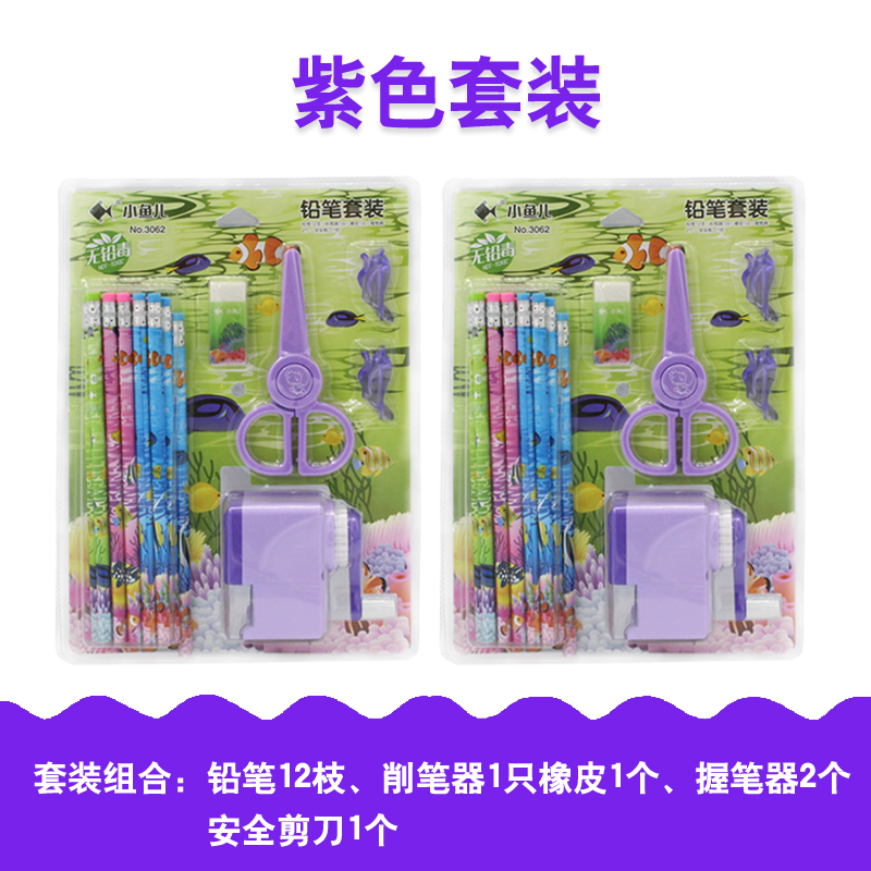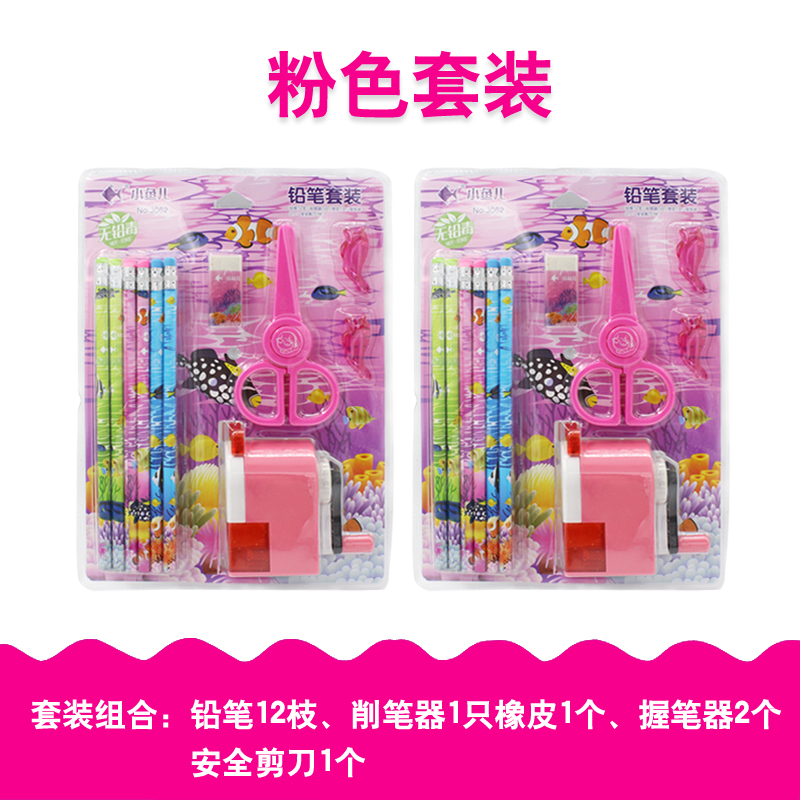 Primary school students study suit pencil suit rubber safety scissors grip pencil sharpeners pencil sharpeners small fish