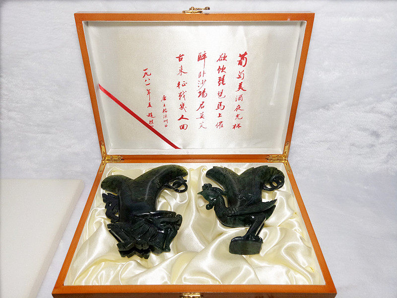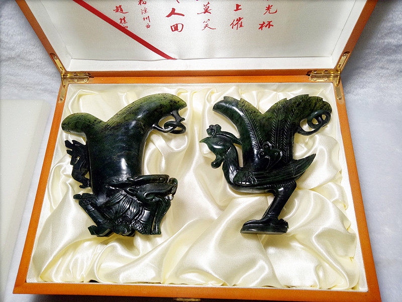 Jiuquan luminous cup Qilian mo yu wushan mandarin duck jade antique cup dragon phoenix cup wedding gift Gansu specialties