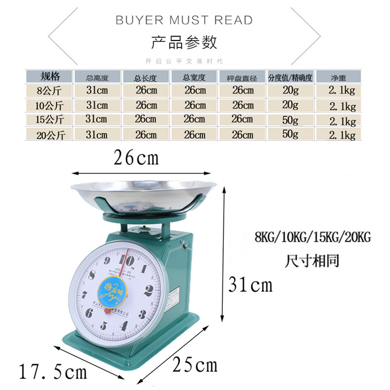 Jinju brand spring tray home disc scale old-fashioned mechanical disc weighing kitchen scale 10kg kg pointer weighing disc scale