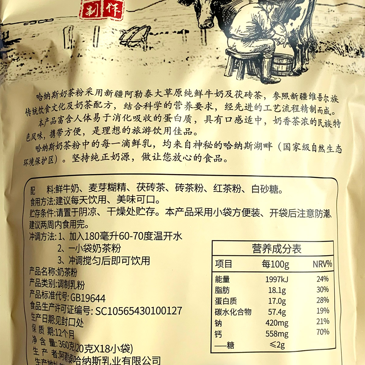 Fresh milk malt Burnt Essence salt Pine Brick Tea Brick Tea Powder Red Tea Powder white granulated sugar (see the product packaging bag for details)