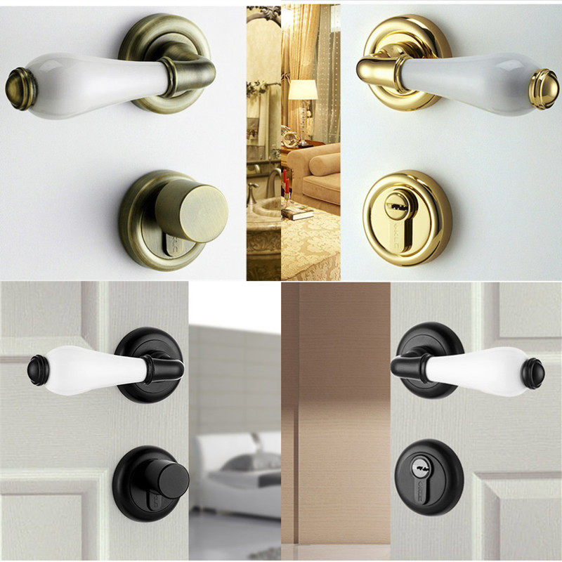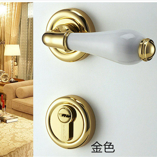 Door Lock Room Door Bedroom Eu Style Room Interior Makeup Room American Golden Two-style New ceramic doorknob mute