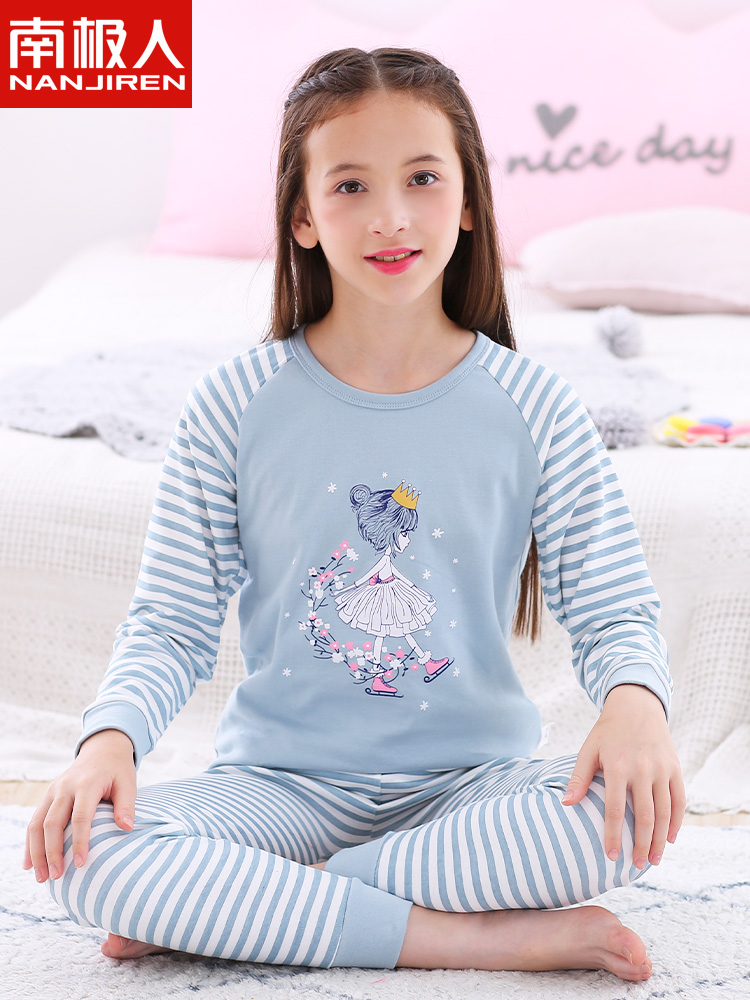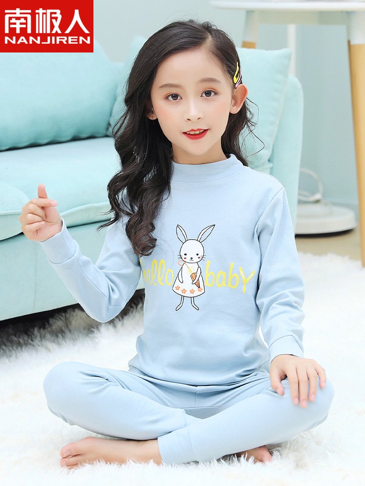 Nanjiren Girls' Autumn Clothes and Autumn Pants Set Pure Cotton Spring and Autumn Thin Medium and Large Children's Pajamas Cotton Sweater Children's Underwear