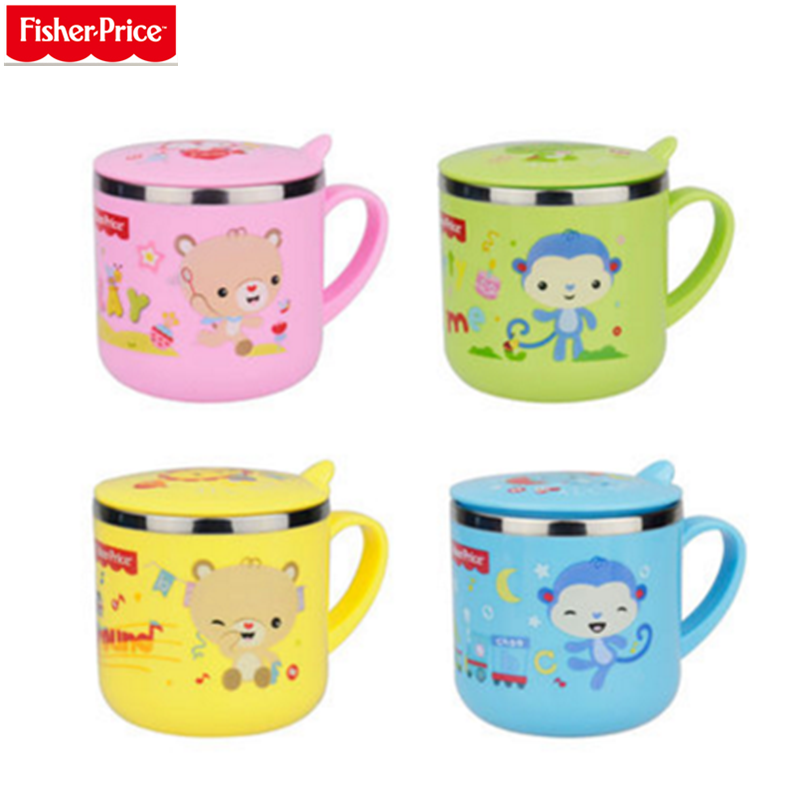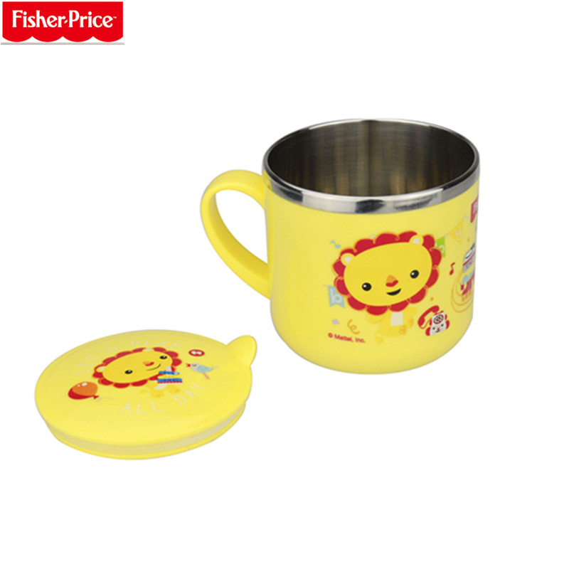 Fisher children's water cup baby with cover stainless steel anti-scalding cartoon mouth cup toddler with handle water cup 8019-Taobao