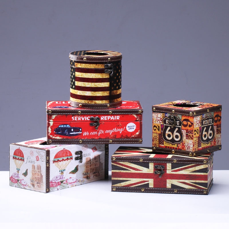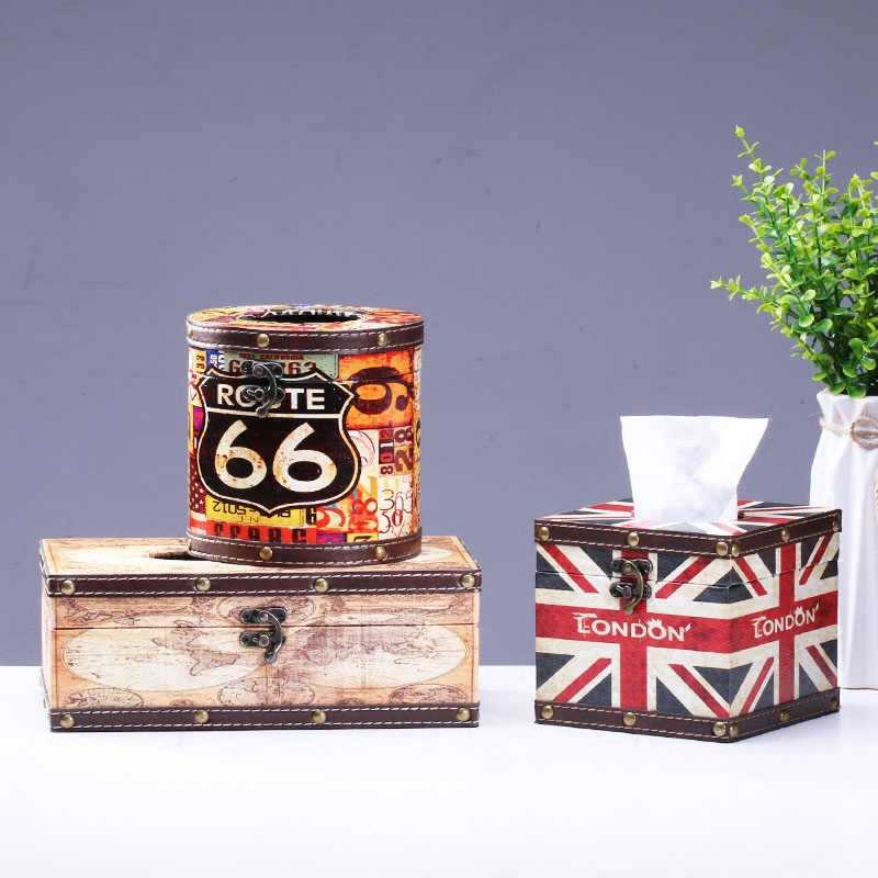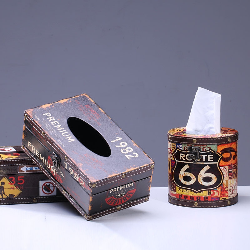 Creativity European Style Retro Tissue Box Fashion Leather Extraction Style Paper Towels Toilet Paper Box Bar KTV Decorated Living Room
