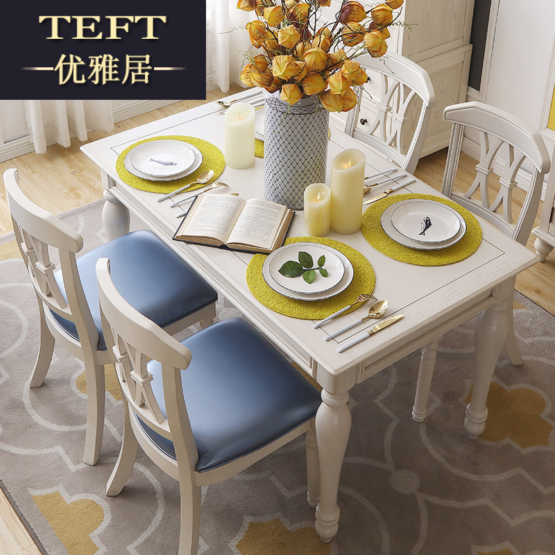 American dining table Solid wood dining table and chair combination Living room rectangular household dining table furniture One table and six chairs
