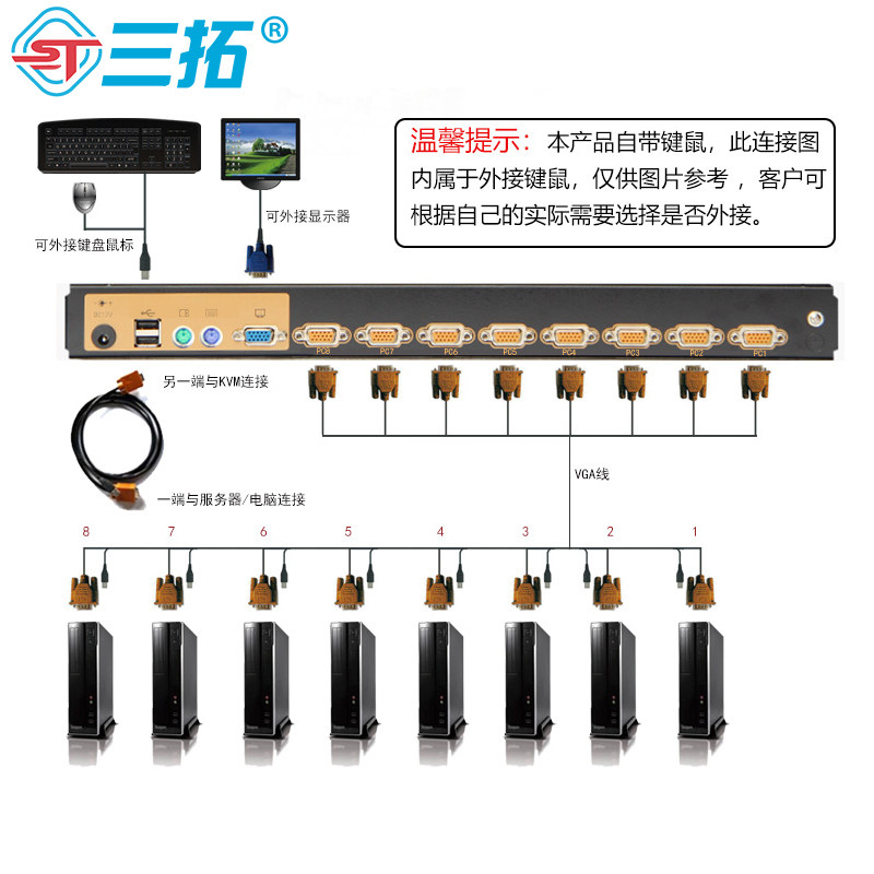 Triple-Rio TL-1908 KVM switcher 8-port 19-inch computer cascading rack kvmUSBVGA