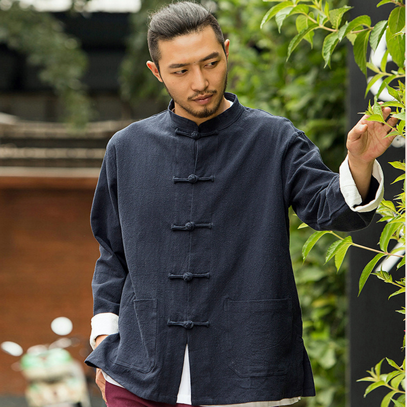 Chinese style Tang dress men's Chinese linen buckle Tai Chi shirt Retro style long sleeve jacket Lay suit Han Suit men's clothing