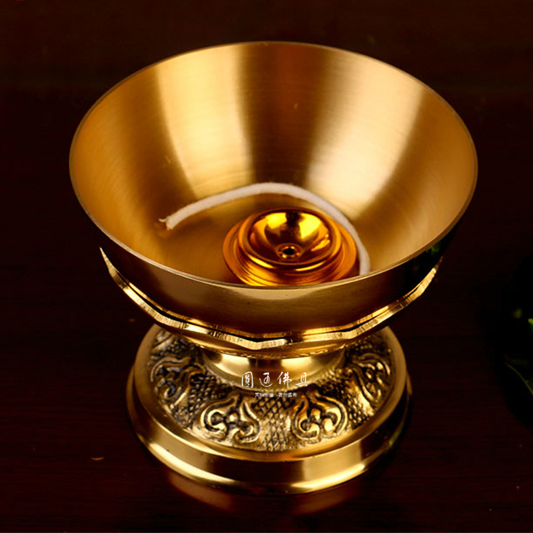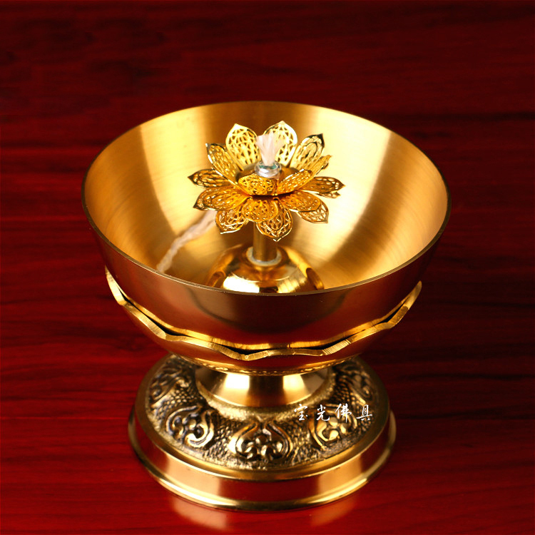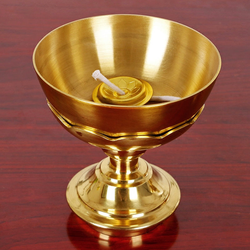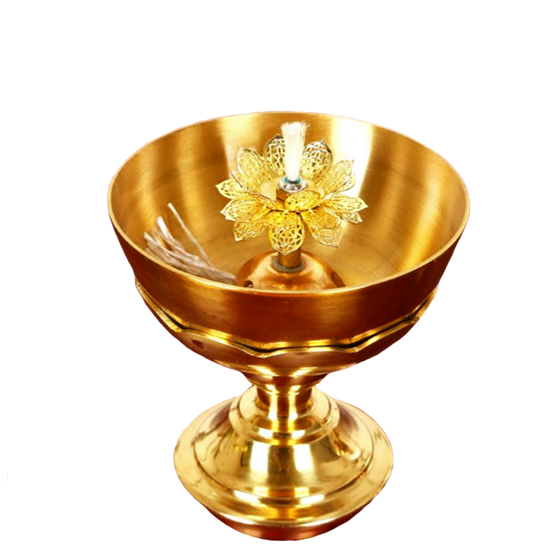 Buddha's former copper oil lamp Home for Buddhist cooking oil lamp pure copper liquid body crisp oil lamp Lotus Changming lamp Guanyin oil lamp