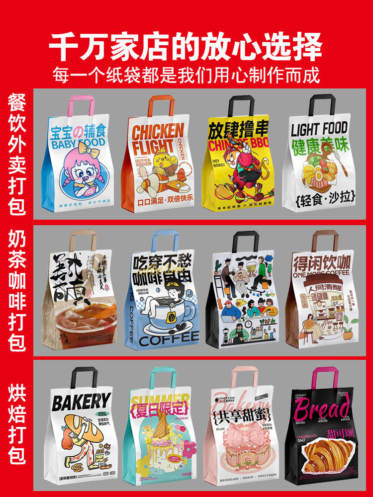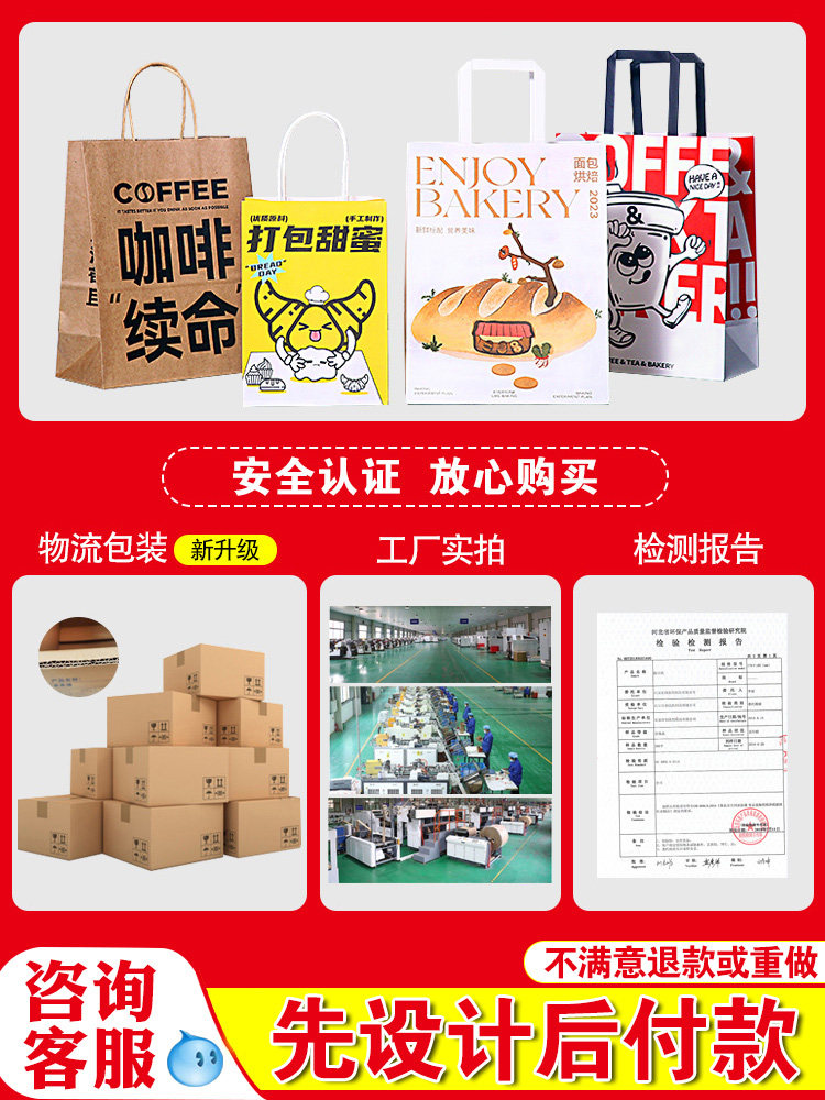 Kraft paper bags, handbags, takeout bags, catering, commercial coffee, roasted bread, gift packaging bags, customization