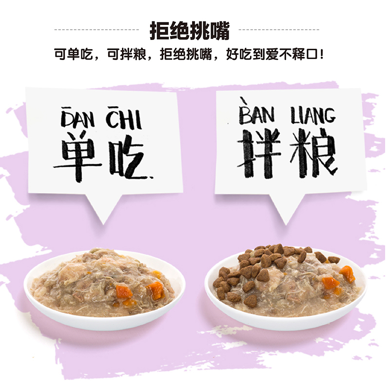 80g * 10 packs of tuna (2 packs randomly given) 80g * 10 packs of chicken and crab meat (2 packs randomly given) 80g * 10 packs of chicken (2 packs randomly given) gold needle soft