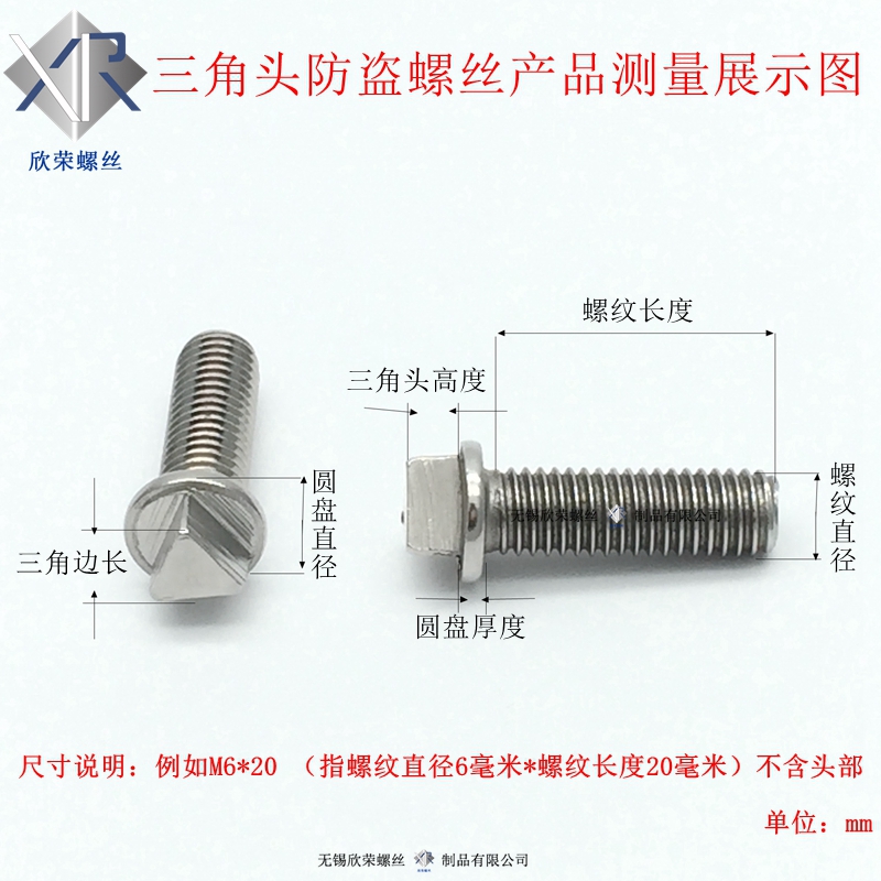 M10 304 stainless steel outer triangular head anti-theft screw main shell bolt railway power facility street light pole screw