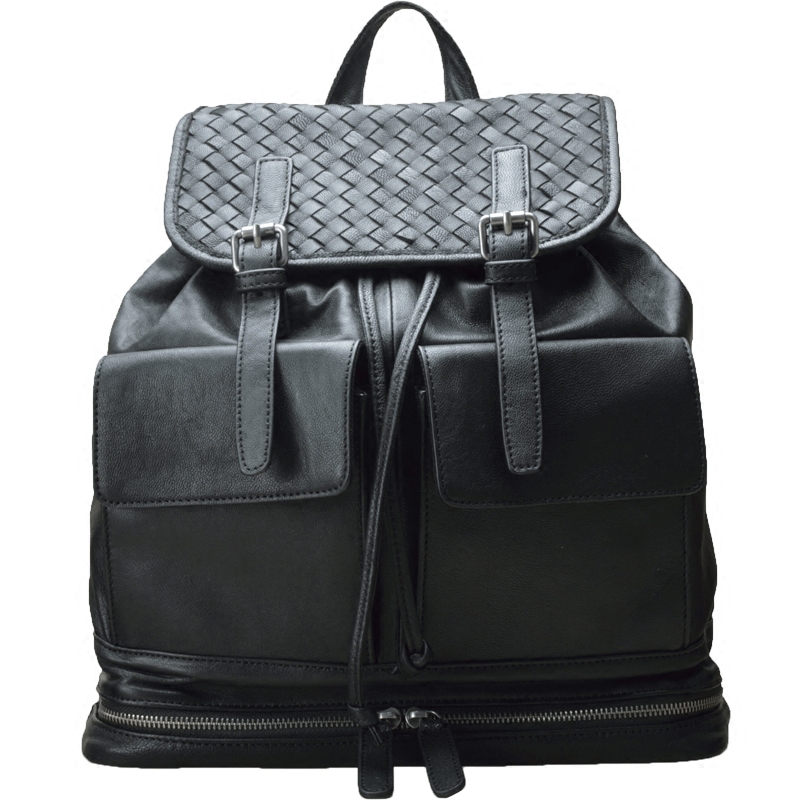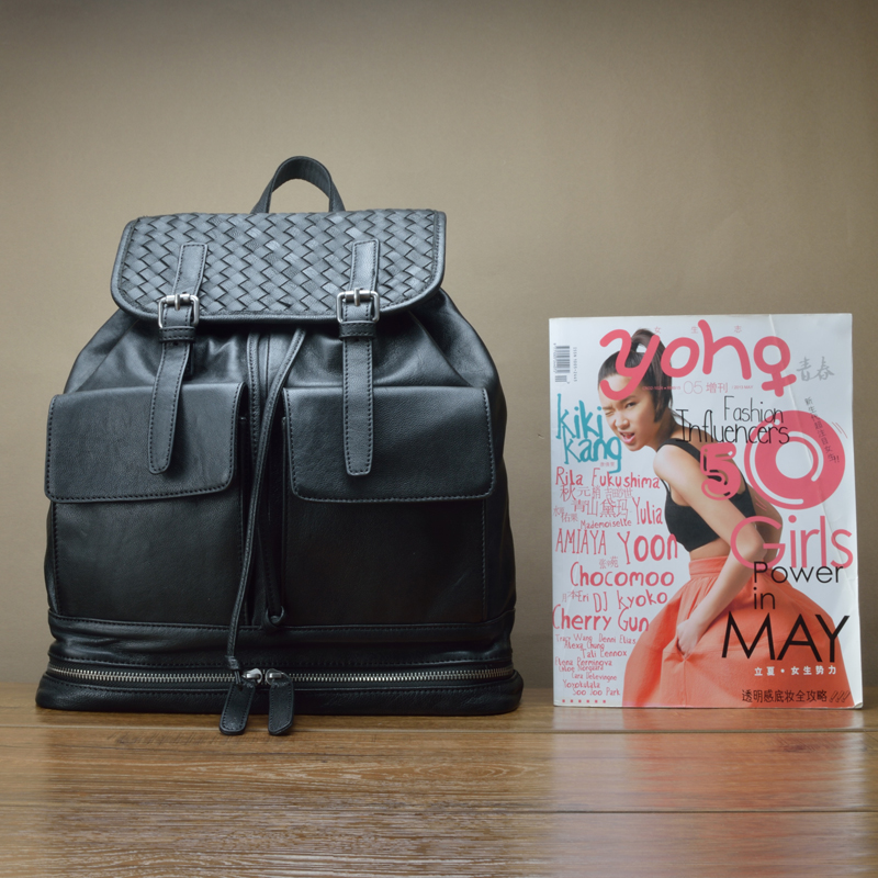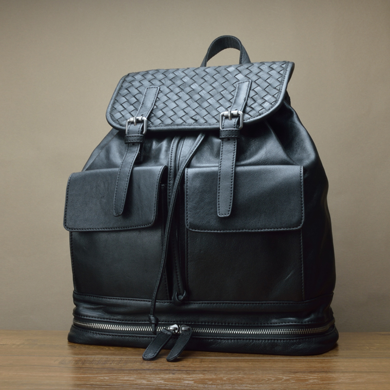Fmmix imported vegetable tanned sheepskin men's backpack woven military leather back backpack fashion street tide computer bag