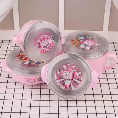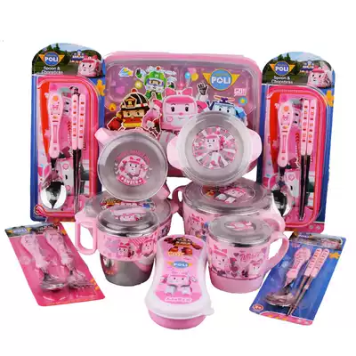 Original imported Korean deformed police car Amba children stainless steel tableware pink water cup bowl set